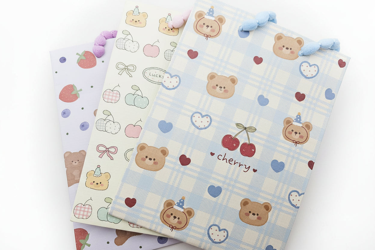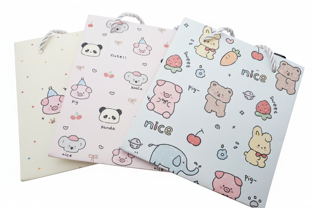 ¡Prepárate para envolver tus tesoros con un arcoíris de dulzura! Nuestra Bolsa de Regalo es la forma más adorable y súper kawaii de entregar felicidad. Cada diseño es una explosión de encanto positivo, perfecta para cualquier ocasión especial. Elige tu favorita entre las vibras amistosas de "Friends", la ternura pura de "Cute", la elegancia adorable de "Nice", o los colores pastel que derriten el corazón: Celeste, Rosado y Morado. ¡Con esta bolsa, cada regalo se convierte en una aventura mágica de alegría y dulzura! Es el toque final irresistible que tu obsequio necesita.